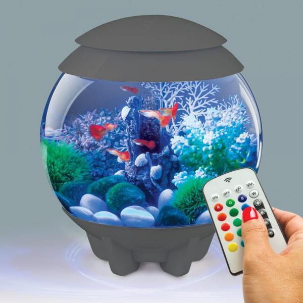 Velmi klasické kulovité akvárium OASE biOrb HALO 30 v šedé barvě, se vzdušným designem a vícebarevným LED osvětlením. Pokud hledáte klasické kulaté akvárium, které ale bude vybaveno vším co potřebujete pro chování Vašich vodních mazlíčků, akvárium biOrb HALO je skvělá volba. Design je klasický kulovitý, přesto to není jen nudná koule. Akvárium nestojí na klasickém podstavci, ale na 5 plastových nohách, které mu dodávají vzdušnost a eleganci.