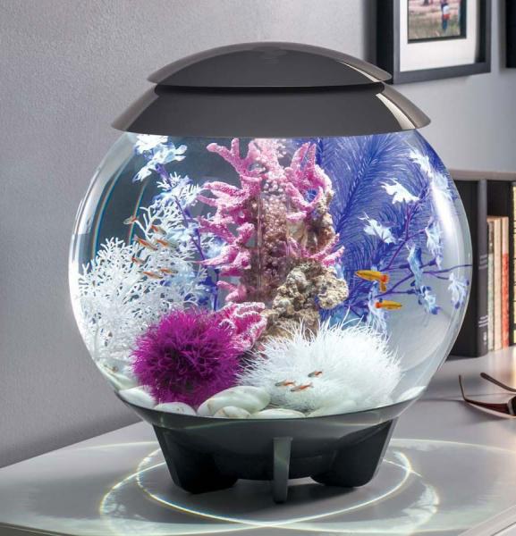 Designový objekt biOrb HALO zaujme skrytou vodní hladinou. Tato verze je dostupná v různých velkostech a barvách. V závislosti na designovém provedení lze osvětlení ovládat v časových cyklech. Můžete si vybrat mezi různými barvami osvětlení. Kromě akrylátového akvária obsahuje kompletní sada LED světelnou jednotku, akvarijní čerpadlo, transformátor, provzdušňovací kámen, keramické médium a filtrační náplň. Tento designový objekt může být použit také jako akvárium.