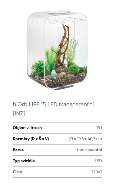 Upřesnění parametrů pro Oase biOrb LIFE 15 LED (akvárium transparentní)
