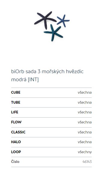 Upřesnění parametrů pro Oase biOrb mořské hvězdice modré