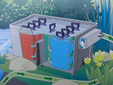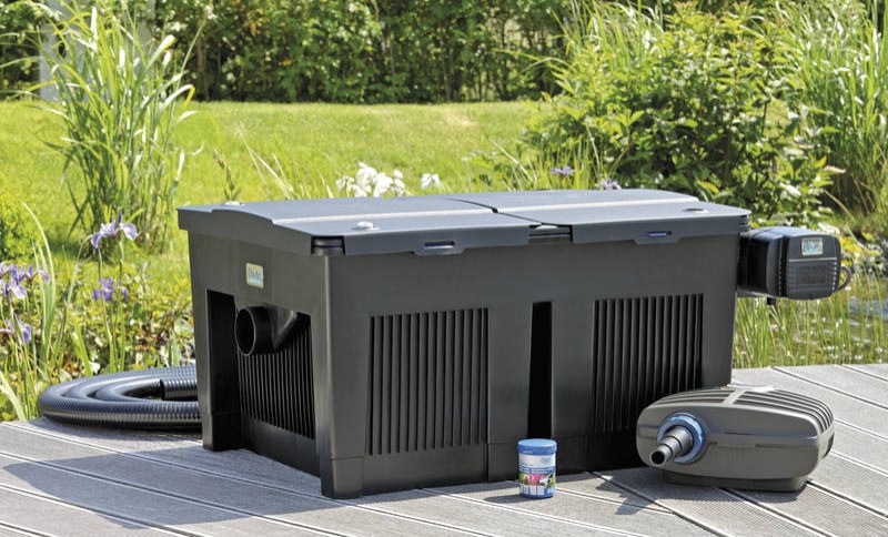 - Výkonný průtokový filtr pro zahradní jezírka do 9m3 a jezírka s rybami. Kombinace různých filtračních pěn zajišťuje nejlepší výkonnost filtrace. Různé filtrační pěny zajišťují optimální biologicko-mechanickou filtraci. Pro čištění má průtokový filtr páky pro stlačení nečistot z filtračních pěn, spodní odtok a připojení pro výplach.