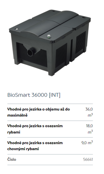 Upřesnění parametrů pro Oase BioSmart 36000 (průtokový filtr na 9m3)