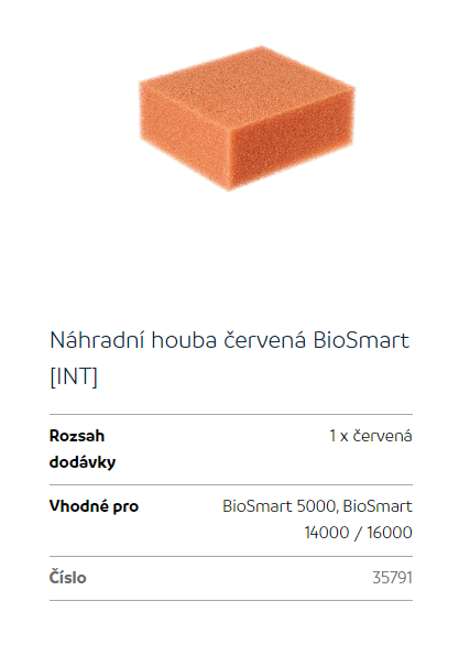 Upřesnění parametrů pro Oase BioSmart 5000/7000/14000/16000 (náhradní červená pěnovka) - 1ks
