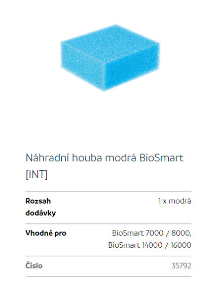 Upřesnění parametrů pro Oase BioSmart 5000/7000/14000/16000 (náhradní modrá pěnovka) - 1ks