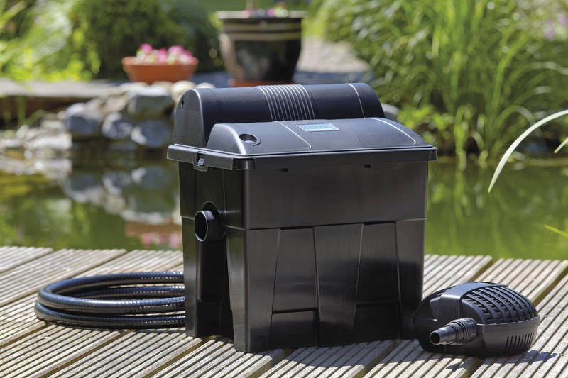 - Výkonný průtokový filtr pro zahradní jezírka do 1,3m3 a jezírka s rybami. Kombinace mechanicko-biologického čištění, integrovaného čističe UVC a jezírkovým čerpadlem zajišťuje nejlepší výkonnost filtrace. Různé filtrační pěny zajišťují optimální mechanickou a biologickou filtraci. Pro čištění má průtokový filtr páky pro stlačení nečistot z filtračních pěn, spodní odtok a připojení pro výplach.
