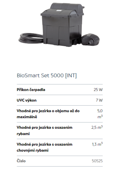Upřesnění parametrů pro Oase BioSmart set 5000 (průtokový filtrační set na 1,3m3)