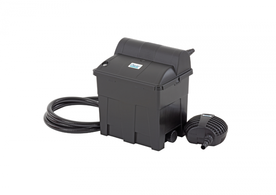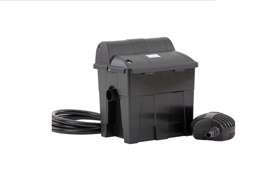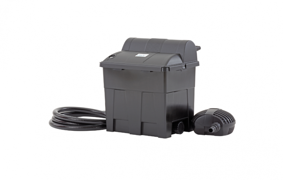 Výkonný mechanicko-biologický filtr s UVC čistícím zařízením a filtračním čerpadlem.