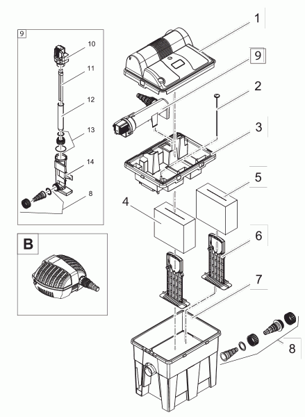 Seznam náhradních dílů na Oase BioSmart set 7000 máme uvedeny pod fotogalerií.