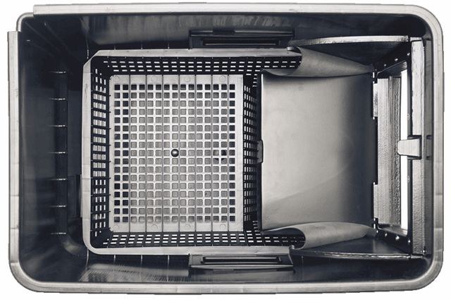 Vybaven 12 l nádrží. Lehce odnímatelný záchytný koš o objemu 12l pro hrubé nečistoty až do velikosti zrna 8mm, objem vnitřního koše umožňuje velmi dlouhý interval čištění.