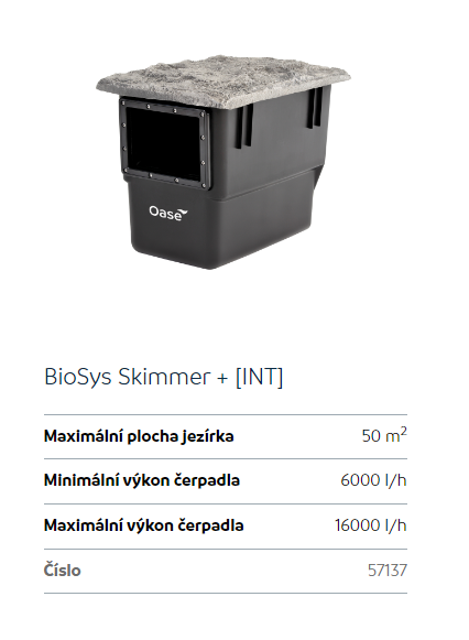Upřesnění parametrů pro Oase BioSys Skimmer + (skimmer na 50m2)