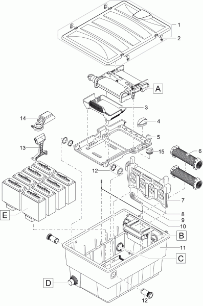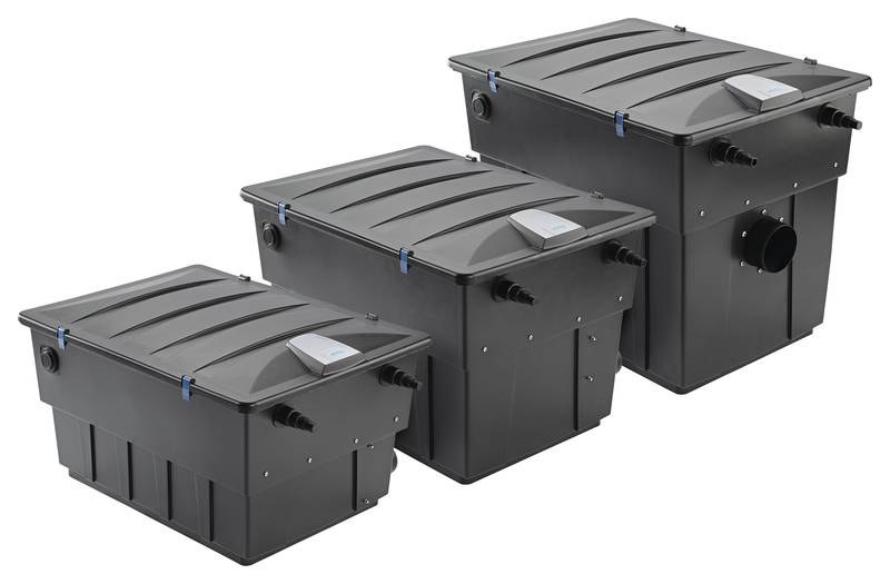 - Vysoce účinný průtokový filtr s dlouhou životností pro jezírka o ploše až 22,5 m3, který vyžaduje velmi malou údržbu, protože hrubé nečistoty jsou před vstupem do filtru odděleny: Motor s dvojitým těsněním zajistí mnohem delší životnost. Nastavitelný automatický čisticí systém zajistí účinný výsledek oddělování nečistot. Rozdělovač vody bez úzkých míst eliminuje ucpávání. Inovativní bariéry na nečistoty brání vymytí filtru. Čištění je velmi pohodlné: Filtrační pás se čistí sám a filtrační pěny se čistí přímo ve filtru.