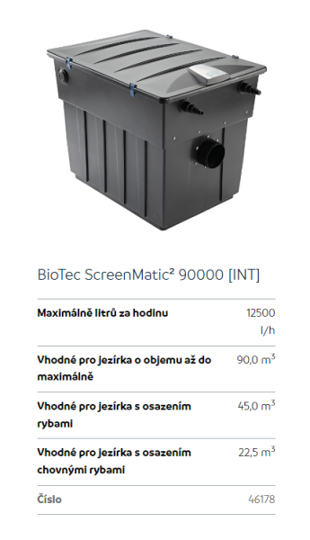 Upřesnění parametrů pro Oase BioTec ScreenMatic2 90000 (průtokový filtr na 22,5m3)
