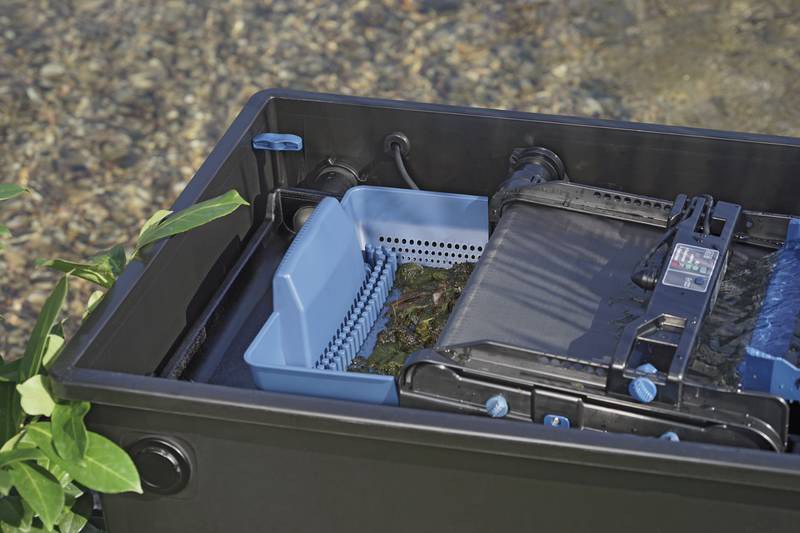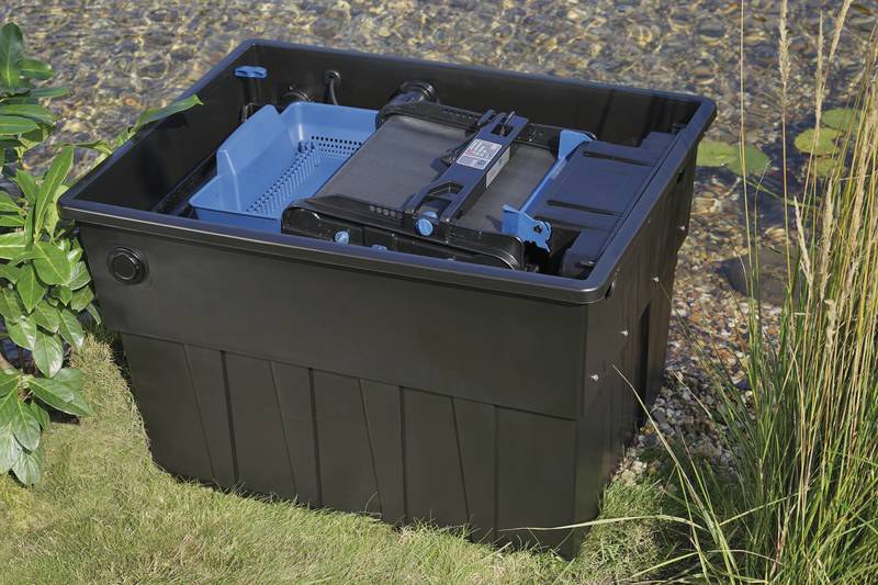 - Vysoce účinný průtokový filtr s dlouhou životností pro jezírka o ploše 15m3, který vyžaduje velmi malou údržbu, protože hrubé nečistoty jsou před vstupem do filtru odděleny. Motor s dvojitým těsněním zajistí mnohem delší životnost. Nastavitelný automatický čisticí systém zajistí účinný výsledek oddělování nečistot. Rozdělovač vody bez úzkých míst eliminuje ucpávání. Inovativní bariéry na nečistoty brání vymytí filtru. Čištění je velmi pohodlné. Filtrační pás se čistí sám a filtrační pěny se čistí přímo ve filtru.