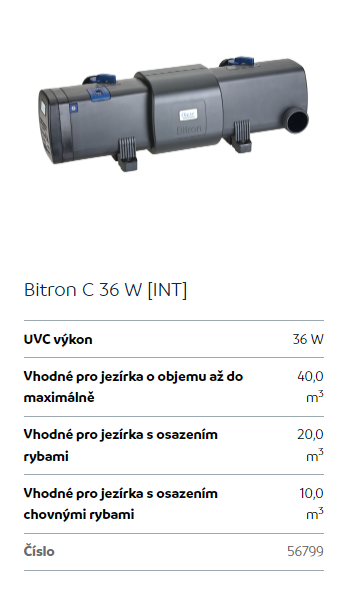 Upřesnění parametrů pro Oase Bitron C 36W UV-C lampa (na 12m3)
