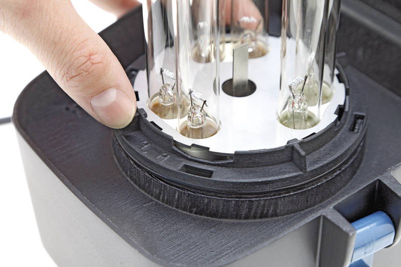 - Zkontrolujte, zda skleněný válec UV lampy není poškozen, s poškozeným válcem nelze UV lampu provozovat.