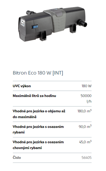 Upřesnění parametrů pro Oase Bitron Eco 180W UV-C lampa (na 60m3)