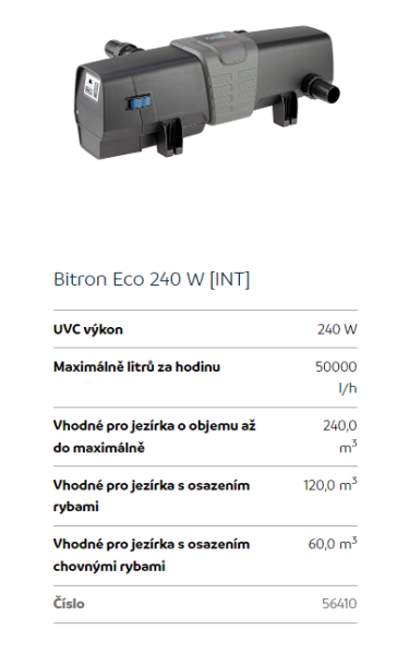 Upřesnění parametrů pro Oase Bitron ECO 240W UV-C lampa (na 80m3)