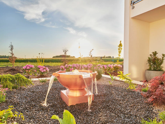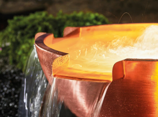 Tyto vysoce kvalitní fontánové nádoby vyrobené z elegantní mědi dodají jakékoliv zahradě speciální auru. Prvky mohou být použity samostatně nebo v kombinaci s volitelnou měděnou základnou vybranou na základě vašeho vkusu. K dispozici je řada různých designů nádob, od hranatých po kulaté, s výtoky nebo bez. Každá nádoba může být osvětlena zevnitř pomocí LED prstence. Teplota barvy 2 800 kelvinů dodává vodě třpytivý nádech. Měděné nádoby získají postupem času další aspekt vzhledu a kouzlo tím, jak se na tomto kovu vytváří patina.
