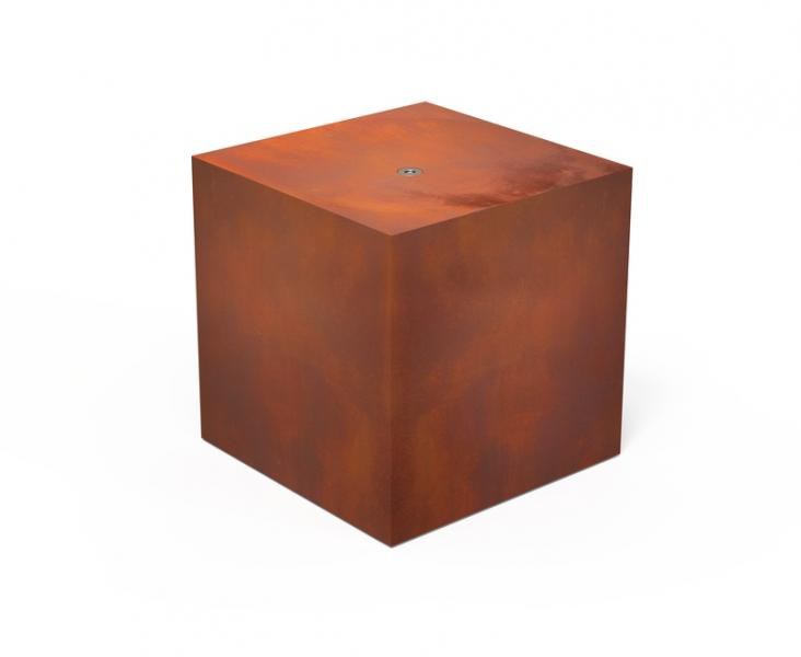 • Charakteristická kostka s výraznými rohy a hranami, vyrobená z klasické, trendy oceli Corten *1.