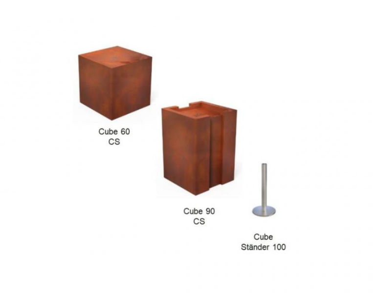 Trendy kostky v designovém stylu z cortenové oceli se světelnými efekty.