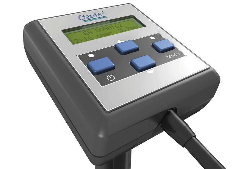 Chytrá řídicí jednotka EGC (Oase Control) pro čerpadla Eco Expert. Umožňuje inteligentní regulaci a řízení, jako je ztlumení, změna stavu SFC/DFC, informace o aktuální spotřebě a řízení rychlosti a celkové doby chodu připojených čerpadel. Osvětlený, dvouřádkový displej je snadno čitelný. Robustní ovladač odolný proti zimě nepotřebuje samostatný napájecí zdroj.