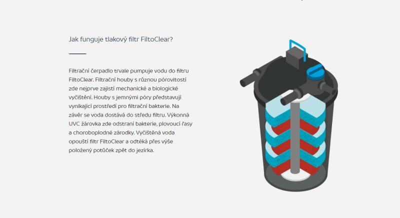 - JEZÍRKOVÝ FILTR: Patentovaný čisticí mechanismus s optimalizovanými filtračními houbami.
