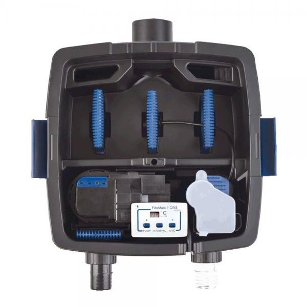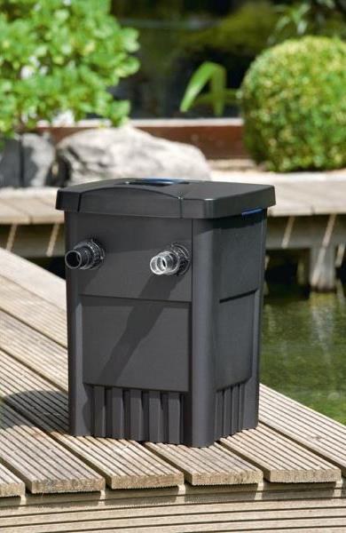 - Chytré řízení jezírka! Filtr čistí nejen vodu, ale i sám sebe. Díky neustálému měření teploty vody spustí automaticky řídicí jednotka v případě potřeby integrovaný čistič UVC, což umožní reálnou úsporu energie až o 40%. Řídicí jednotka také automaticky aktivuje čerpadlo kalu, které odstraňuje nečistoty z filtru. Je téměř neviditelný, protože může být ze 70% skrytý na kraji jezírka. Filtrační pěna se čistí zvnějšku, vhodný pro jezírka do 2m3.