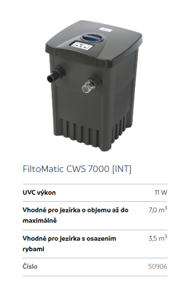 Upřesnění parametrů pro Oase FiltoMatic 7000 CWS (průtokový filtr+UV na 2m3)