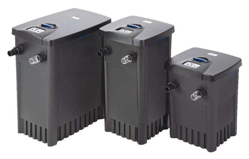 Chytré řízení jezírka! Prvotřídní a výkonné jednotlivé technologie – perfektně vzájemně sladěny. Filtr čistí nejen vodu, ale i sám sebe. Díky neustálému měření teploty vody spustí automaticky řídicí jednotka v případě potřeby integrovaný čistič UVC, což umožní reálnou úsporu energie až o 40%. Řídicí jednotka také automaticky aktivuje čerpadlo kalu, které odstraňuje nečistoty z filtru. Je téměř neviditelný, protože může být ze 70% skrytý na kraji jezírka. Filtrační pěna se čistí zvnějšku, vhodný pro jezírka do 3,5m3.