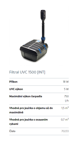 Upřesnění parametrů pro Oase Filtral 1500 UVC (minifiltr s UVC a vodní hrou)