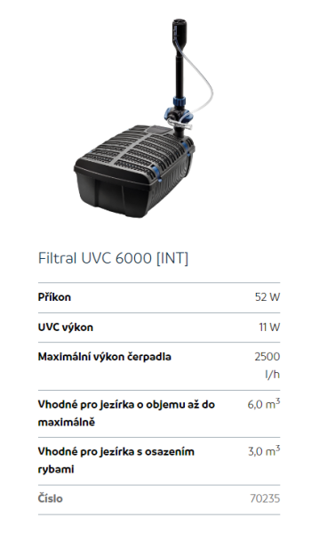 Upřesnění parametrů pro Oase Filtral 6000 UVC (minifiltr s UVC a vodní hrou)