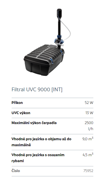 Upřesnění parametrů pro Oase Filtral 9000 UVC (minifiltr s UVC a vodní hrou)