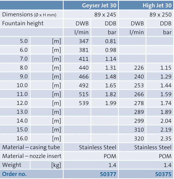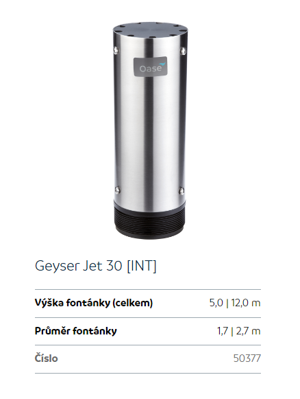 Upřesnění parametrů pro Oase Geyser Jet 30 (fontánová tryska)