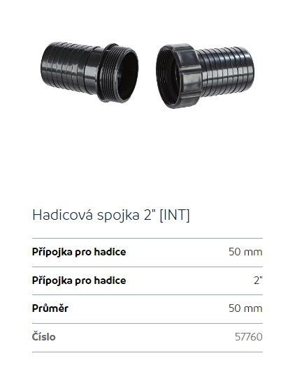 Upřesnění parametrů pro Oase hadicová spojka 2" (50mm)