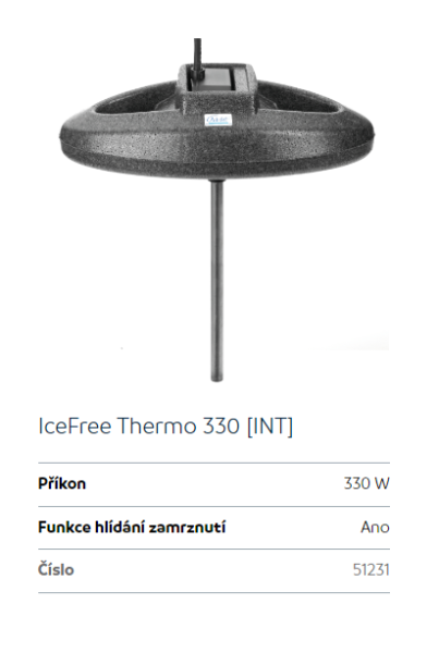 Upřesnění parametrů pro Oase IceFree Thermo 330 (jezírkový ohřívač s termospínačem)
