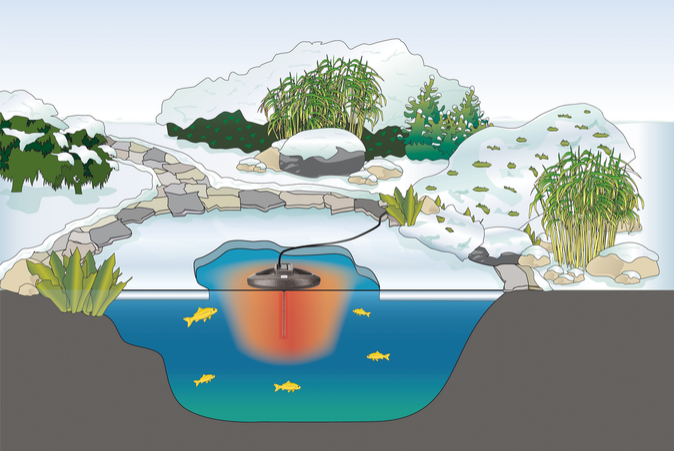 Ohřívač/topná spirála umožňuje bezpečné přezimování Vašeho jezírka.
