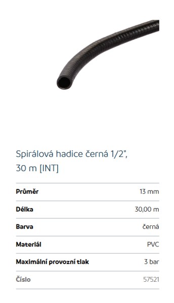 Podrobný popisKvalitní, zesílená, spirálová hadice do jezírek.