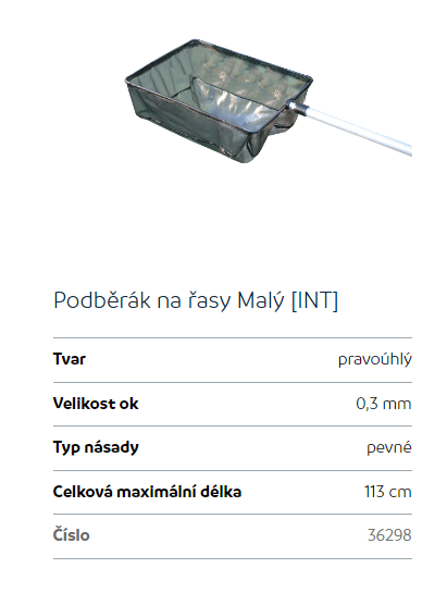 Síťka na řasy v jezírku.