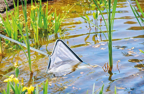 Jemná síťka na řasy v jezírku.