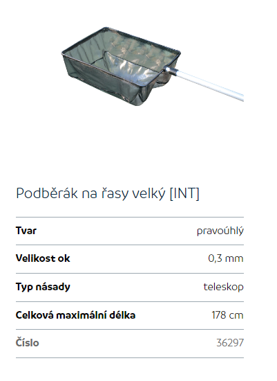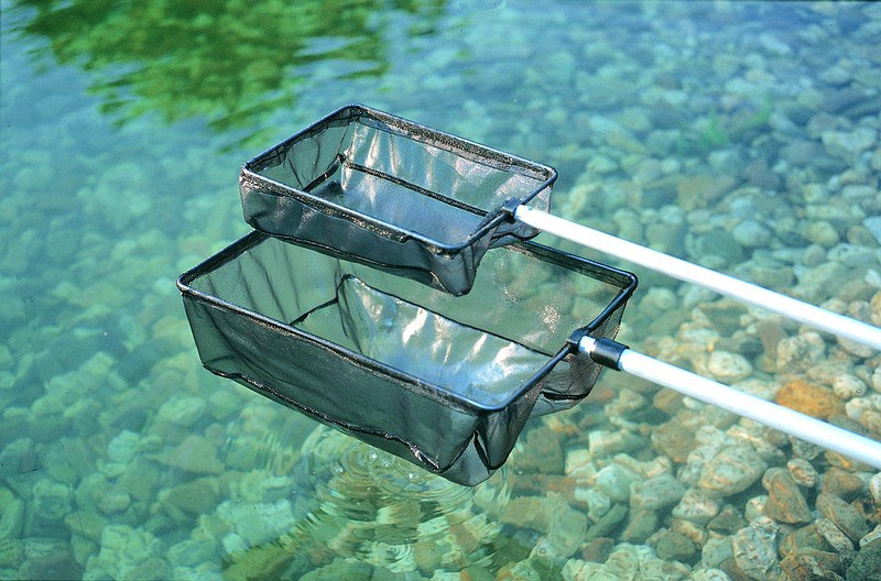 Síťka na řasy v jezírku.