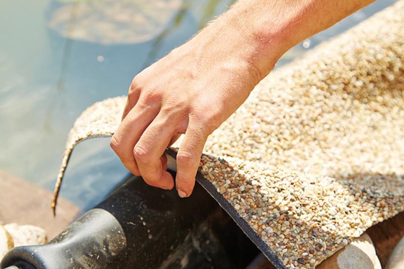 - Jednoduché upevnění: prostě upevněte kamínkovou fólii v místě na jezírkové fólii pomocí tmelu Oase UniFix+.