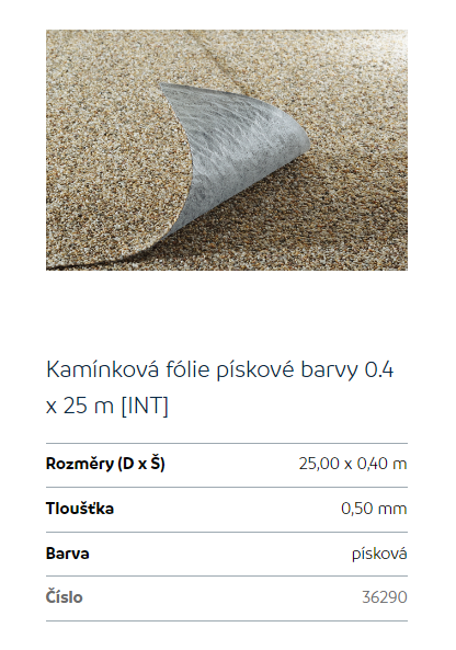 - Váha kamínkové fólie dle výrobce: 1bm/1.61kg.