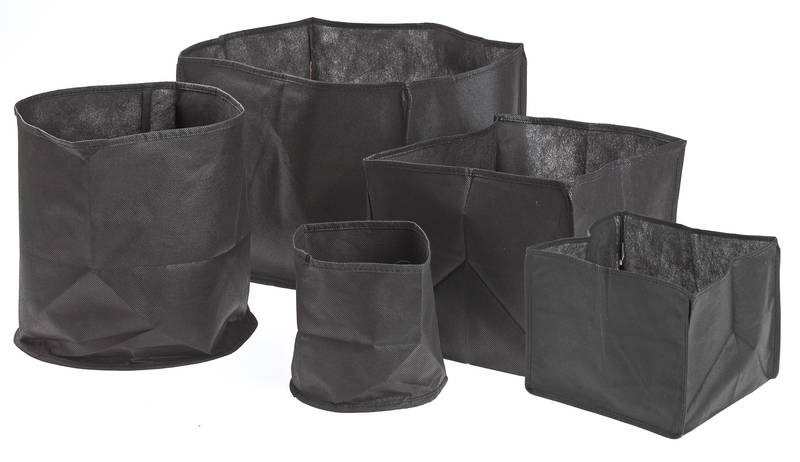 Koše na rostliny z pevné textilní látky.