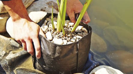 Koše na rostliny vyrobené z pevné textilie odolné proti hnilobě, které vodním rostlinám zajistí bezpečné uchycení na dně jezírka a usnadní péči o rostliny ohrožené v zimě mrazem. Textilie zajišťuje, že do vody v jezírku neunikne téměř žádná zemina. Výměna vody a živin nezbytná pro zdravý růst rostlin může probíhat nerušeně bez ohledu na materiál.