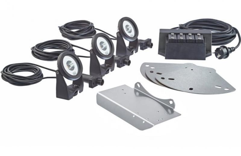 - V rozsahu dodávky je zahrnuto: 3x LunAqua Power LED reflektor, 3x přidržovací braketa pro svítidla, 1x ovládač s kabelem o délce 20 m.