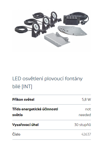 Upřesnění parametrů pro Oase LED Floating fountain (sada osvětlení-teplá bílá pro plovoucí fontány)