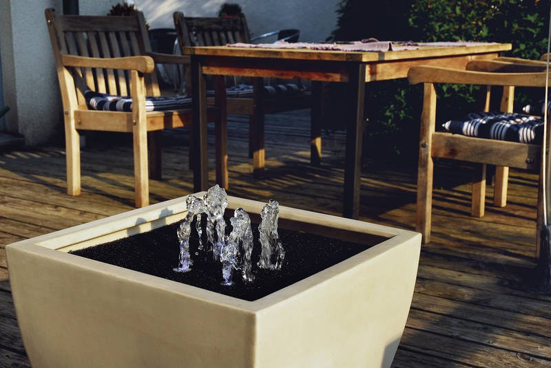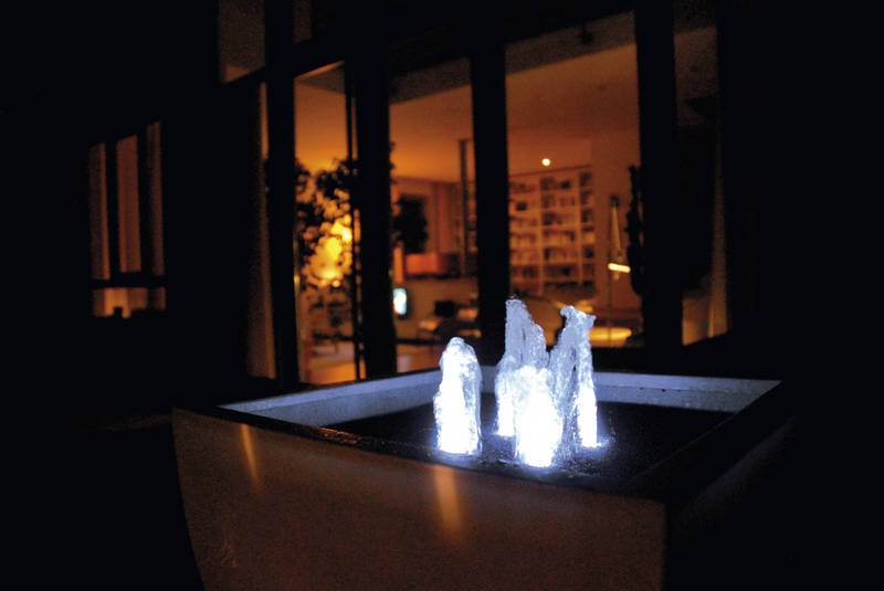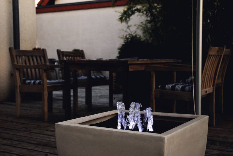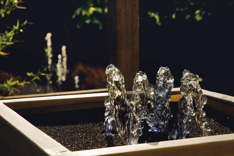 Jasné LED osvětlení pro kameny se zdrojem vody s krytem z vysoce kvalitní nerezové oceli. Výšku vodního prvku a průtok vody lze nastavit. Umožňuje použití nad vodou i pod vodou.
