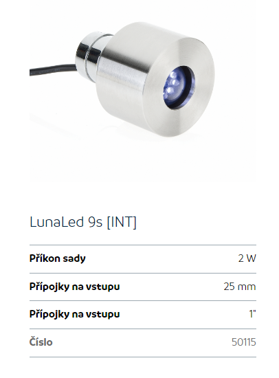 Upřesnění parametrů pro Oase Lunaled 9 s (jezírkové osvětlení)