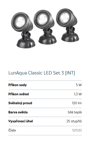 Upřesnění parametrů pro Oase LunAqua Classic LED Set 3 (jezírkové LED osvětlení)