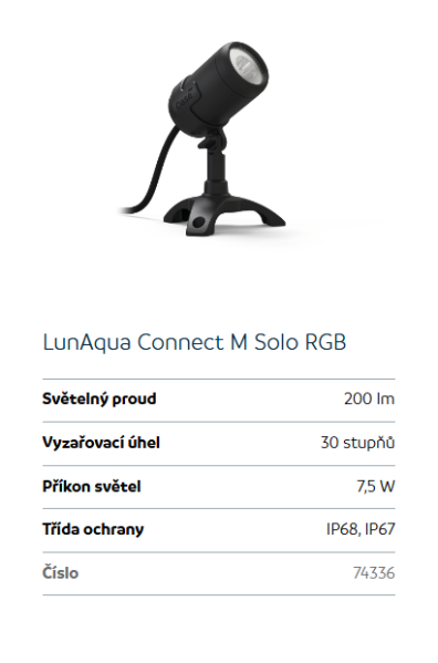Upřesnění parametrů pro Oase LunAqua Connect M Solo RGB (jezírkové LED/RGB osvětlení)